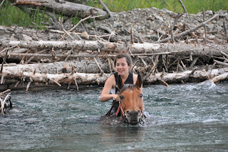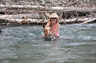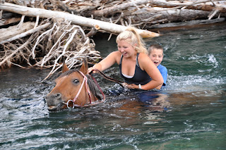 swam and Nad was not one of them! So I tied her reins in a knot around her head