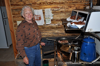 | Barbie (the owner of the Bar B Ranch) making bacon |